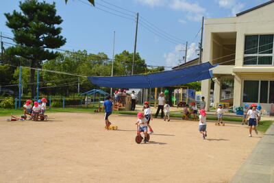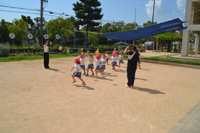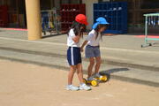 ばら組さんは今日はボールのゴールに向かってかけっこをしました。