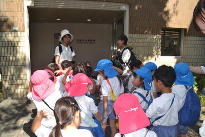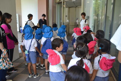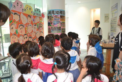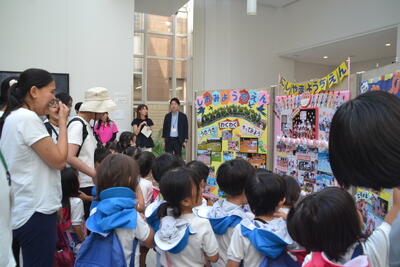公立幼稚園全部の写真パネルを飾ってくださっていました。図書館の方々も出てきてくださいました。ありがとうございました。
