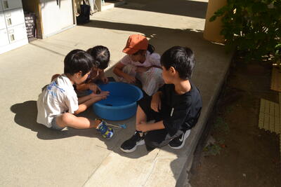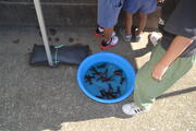 人気のザリガニ釣り。さすが小学生、あっという間にこんなに連れました。