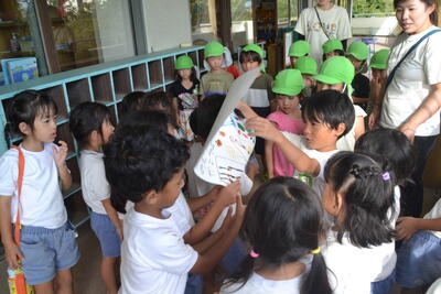 緑保育所の大きい組さんが、秋まつりのポスターとチケットを届けに来てくれました。うれしかったですね。
