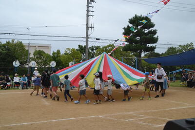 みんなでパラバルーン。小学生も中学生も一緒に楽しんでくれてうれしかったです。