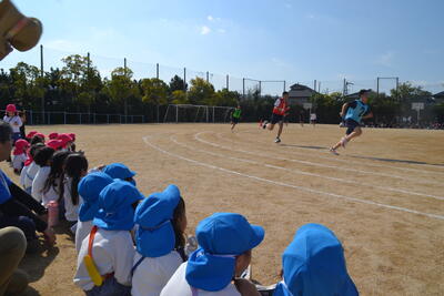 潮見中学校のスポーツ大会を観に行きました。校長先生が来てくださいました。