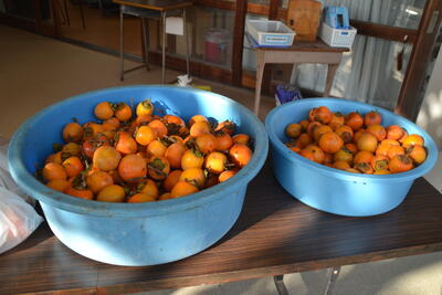 今年は渋柿が大豊作でした。お家で吊るし柿にしてもらえるよう、おみやげに持って帰ってもらいました。