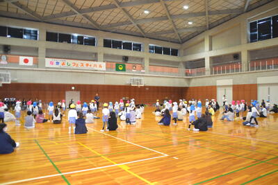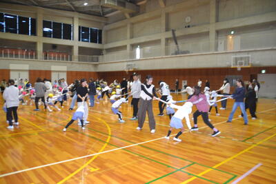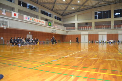 市内の公立幼稚園の年長児親子が一堂に会してふれあい遊びを楽しむ「なかよしフェスティバル」が今年も体育館で行われました。市長さんがお祝いに駆けつけてくださいました。