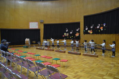 写真の前撮りをしました。 投稿: ルーム管理者 (16:24) いよいよ明日は音楽参観日。業者の方に写真の前撮りをしていただきました。ばら組さんは楽器をいろいろに鳴らしていましたね。 なでしこ組さんは、さすが年長さんらしさを感じました。 全園児の歌では、みんなの気持ちが集まって素敵な歌声でした。 明日、お家の人たちに見てもらうのが楽しみですね!