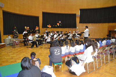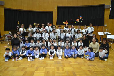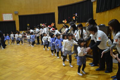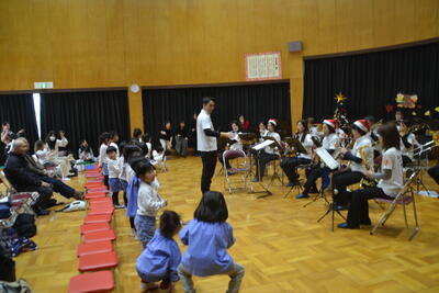 潮見幼稚園の子どもたちと保護者、地域の方々のために、ベルズウィンドオーケストラの方々がコンサートを開いてくださいました。子どもたちの大好きな曲をたくさん演奏してくださいました。