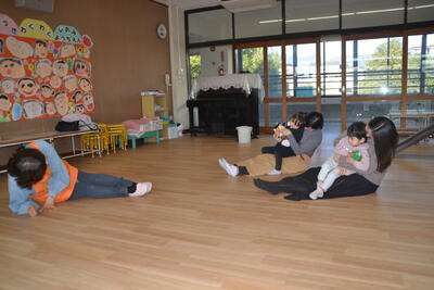「くれよん」では子育てセンターのアドバイザーの先生がふれあい遊びや読み聞かせをしてくださいました。