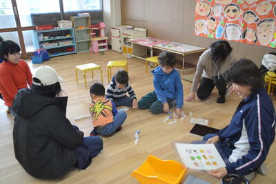 マラソンが始まりました。 投稿: ルーム管理者 (01/08) 朝の寒さに負けず、元気にマラソンをしました。お家の人も一緒に参加してくれました。 なでしこ組さんが先生役になって体操をしました。明日から毎日マラソンと体操をして、元気に過ごしましょうね! 今日からさんさんひろばも始まりました。十二支の干支で遊びました。 潮見幼稚園は子どもも大人も元気いっぱいでうれしいです。