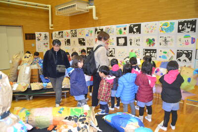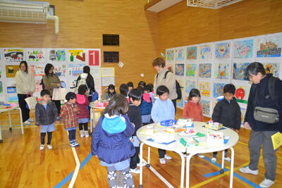 浜風小学校の図工展に行きました。 投稿: ルーム管理者 (17:01) なでしこ組さんの白雪姫。森の奥は嵐のような風が吹き荒れ、やがて日が暮れて真っ暗になりました。 ばら組さんの7匹のこやぎ。お母さんが買い物に出かけると、こやぎたちは仲よく遊びました。 お昼から、浜風小学校の図工展に行きました。面白い作品やすごい作品がたくさんでしたね。 寒い中、頑張って歩きましたね。来週も元気に来てくださいね!