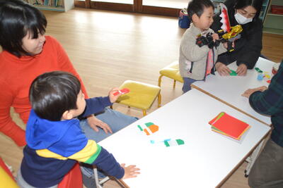 今日のさんさんひろばは、折り紙でクレヨンを作りました。楽しかったですね。