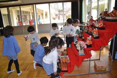造形教育展を見に行きました。 投稿: ルーム管理者 (14:57) 今日もなでしこ組さんがばら組さんにやさしくうさぎ当番のやり方を教えてくれました。 なでしこ組さんはおひなさまの飾りつけもしてくれました。 午後から歩いて美術博物館に行きました。 造形教育展では自分たちの作品が飾ってあってうれしかったですね。 小学生や中学生の作品もすごかったですね。 来週はお別れ遠足に「神戸どうぶつ王国」に行きますよ。楽しみに来てくださいね!