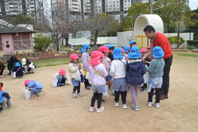 土や砂は石が細かくなってできたものだと教えてもらいました。幼稚園の園庭にはきれいなピンクの土と白の土があることを知りました。