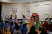 なでしこ組さんは、しおさいこども園さん、緑保育所さんと一緒に、潮見小学校の1年生に招待してもらいました。1組から3組に分かれて、それぞれのクラスの楽しい催しに参加しました。