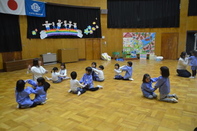 リトミックがありました。 投稿: ルーム管理者 (18:09) ばら組さんはリズムに合わせて足をポンポンたたきました。 友達と気持ちを合わせたなかよし遊び、楽しかったですね。 なでしこ組さんはリズムに合わせてバランスをとりました。 歌に合わせて数字遊びも面白かったですね。 2年間お世話になった清川先生に、感謝の気持ちを込めてプレゼントを渡しました。 楽しい遊びをたくさん教えてくださってありがとうございました。