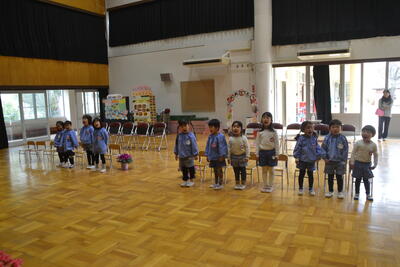 明日は修了式、ばら組さんはイスを並べたり、歌を歌ったりしました。明日はお家の人に見てもらいましょうね。