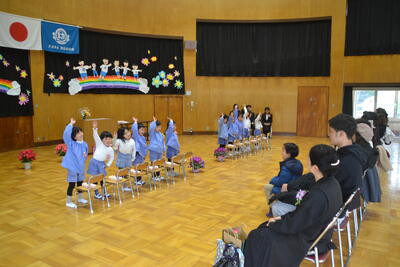 令和7年度の修了式をしました。 投稿: ルーム管理者 (18:22) 今日はばら組さんの修了式。一人ずつ、進級プレゼントをもらいました。 思い出を歌ったりお話ししたりしました。 大好きなお家の人が応援してくれて、うれしかったですね。 保護者の皆さまの温かいご理解とご協力のおかげで、子どもたちはしっかりと成長し、自信をもって年長組へ進級します。本当にありがとうございました。大きい組になっても「うきうき わくわく やってみよう!」で楽しく過ごしましょうね。