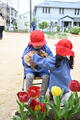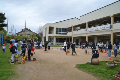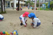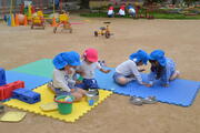 昨日入園したばかりのばら組さん。お家の人と離れても、園庭で好きな遊びを見つけて元気に遊んでいましたね。なでしこ組さんが一緒に遊んでくれてうれしかったですね。