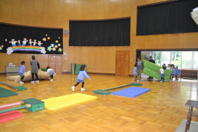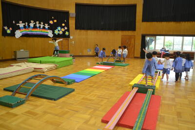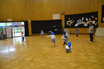 雨でも元気いっぱい遊びました。 投稿: ルーム管理者 (15:46) 今日は一日中雨でした。なでしこ組さんがみんなで遊具を運んで、遊戯室に楽しい遊びを考えてくれました。 ばら組さんを誘いに来てくれました。 なでしこ組さんが優しく教えてくれて、手をつないでくれたのでばら組さんも楽しかったですね。なでしこ組さん、ありがとう! いるか組さんも、ホールでケンステップを使って鬼ごっこをして遊びました。 雨の日でも体をたくさん動かして遊べてよかったですね!