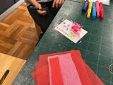 なでしこ組さんは、昨日えのぐで描いたちゅうりっぷの絵をクレヨンで仕上げました。