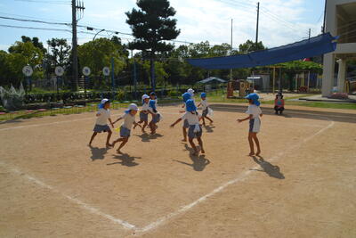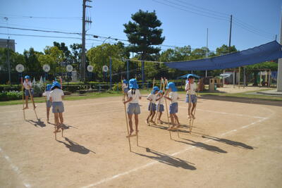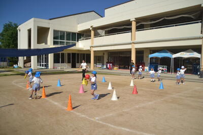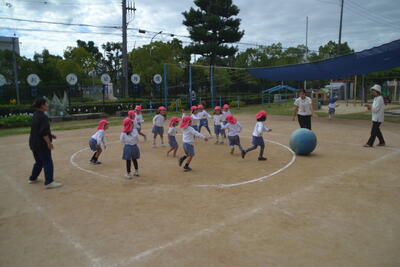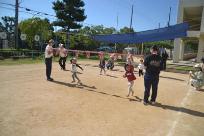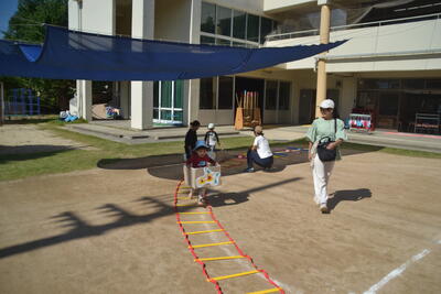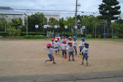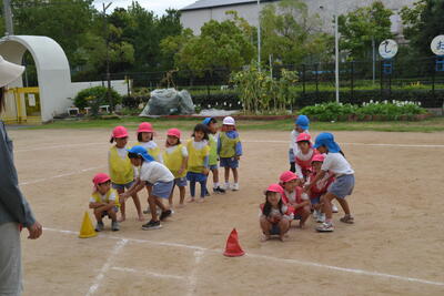 ばら組さんのリレー。なでしこ組さんが優しく教えてくれたので、1回で成功しました!