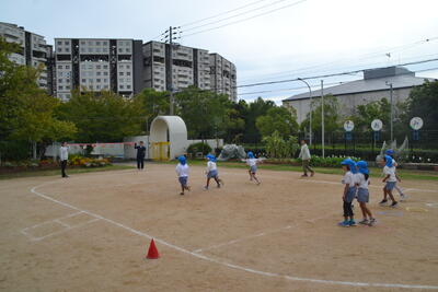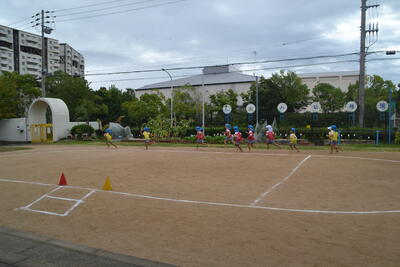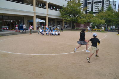 小学生とリレーをしました。さすが小学生、速かったですね!