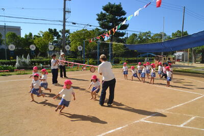 今日は暑いくらいのお天気でしたが、子どもたちは暑さに負けず元気いっぱい運動会ごっこをしました。ばら組さんのかけっこ、何度も何度も力いっぱい走りましたね。