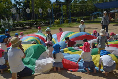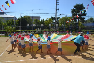 みんなでパラバルーンをしました。小さいお友達も喜んでくれました。