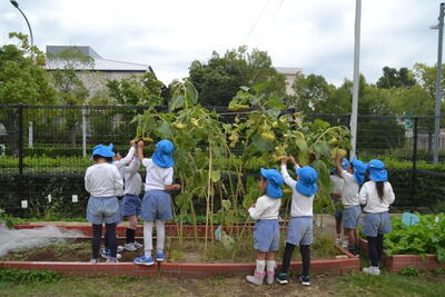 なでしこ組さんの育てた阪神淡路大震災から受け継いでいるひまわりの種がたくさんできていました。収穫してお家に持って帰ることにしました。残りの種はばら組さんに託すことにします。来年よろしくね。