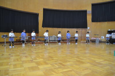 なでしこ組さんは、木琴と鉄琴で演奏しました。