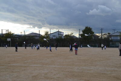 潮見中学校のグランドをお借りして、凧あげをしました。楽しかったですね!