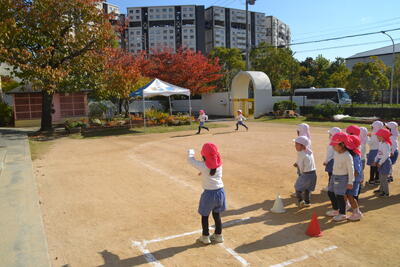 毎日リレーに励むなでしこ組さんを見ていたばら組さんは、自分たちだけでリレーを楽しんでいました。