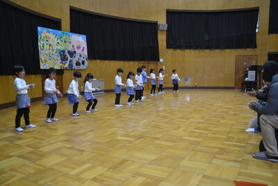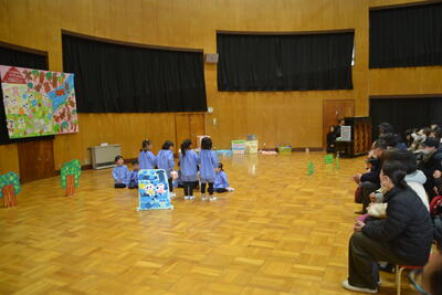 今日は、楽しみにしていた生活発表会。教育長様、校長先生方はじめ、たくさんのご来賓の方々と、お家の方とでお客さまいっぱいでした。