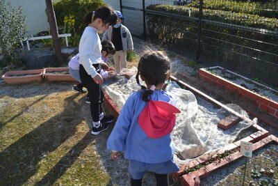 なでしこ組さんは、お花植えもしてくれました。みんなが卒園する頃はもっと大きくなってみんなをお祝いしてくれることでしょう。