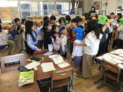 最後はいつまでも別れを惜しんでいました。優しい1年生が大好きになり、小学校に行くのが楽しみになりましたね!潮見小学校の1年生のお兄さん、お姉さん、たくさん楽しいことを考えてくれて、ありがとうございました。