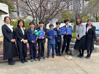 今日はお向かいの潮見中学校の卒業式。ご来賓の高島市長さまと三宅教育委員様が帰りに立ち寄ってくださいました。