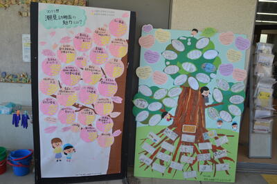 「潮見幼稚園の魅力を知ってもらい隊」の方々が作ってくださったアンケート集計結果のパネルが出来上がりました。