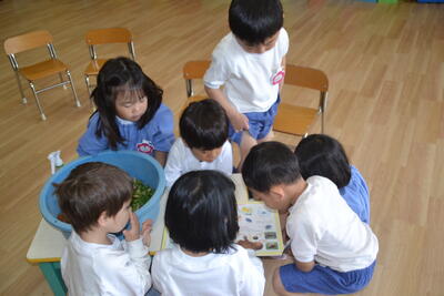 ザリガニ釣りを楽しんだり、うさぎと触れ合ったりもしました。教育委員会の方々が来園され、潮見幼稚園の環境を褒めてくださいました。