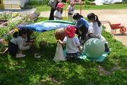昨日入園したばかりのばら組さん。お家の人と離れても、園庭で好きな遊びを見つけて元気に遊んでいましたね。なでしこ組さんが一緒に遊んでくれてうれしかったですね。