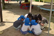 幼稚園でお留守番をしてくれていたばら組さん。ザリガニ釣りを楽しみました。